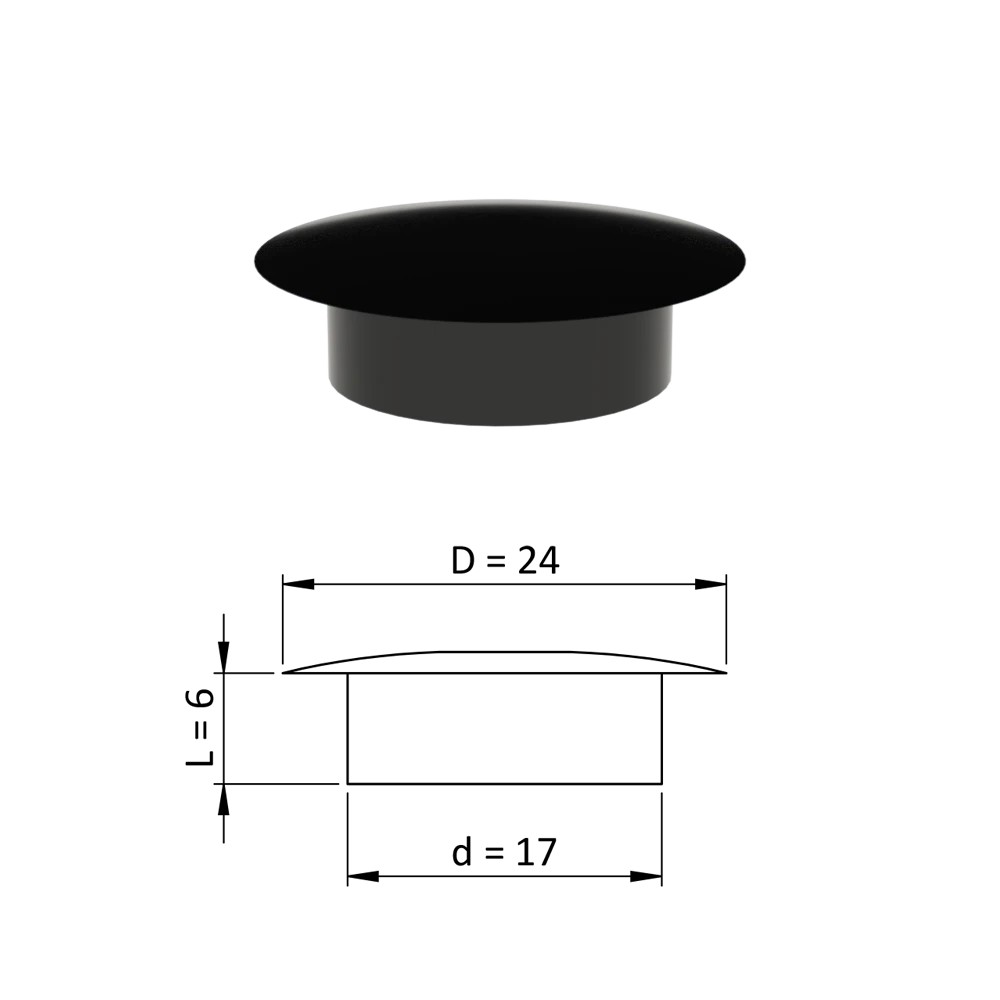 Vnitřní krytka plastová kulatá, otvor ø 17 mm. Dodáváme v barvách: černá RAL9005, bílá RAL9010, šedá RAL 7040.