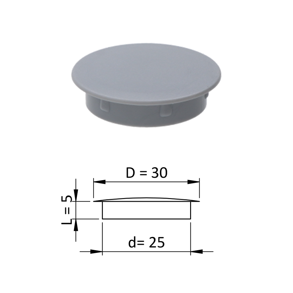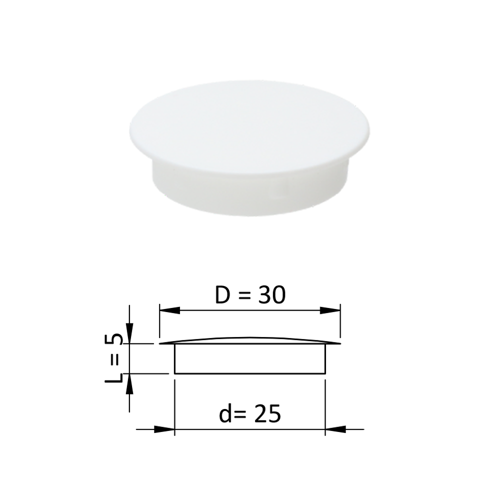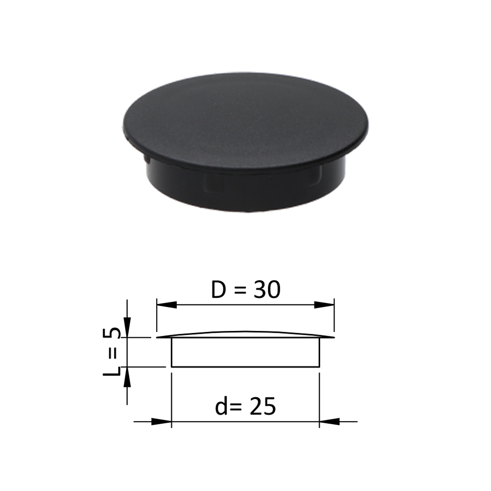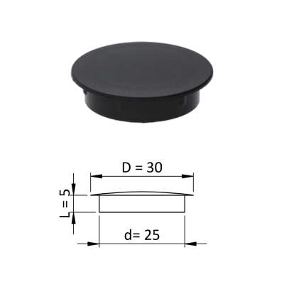 Vnitřní krytka plastová kulatá, otvor ø 25 mm. Dodáváme v barvách: černá RAL9005, bílá RAL9010, šedá RAL 7040.