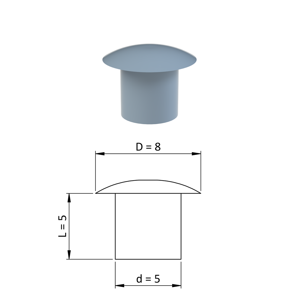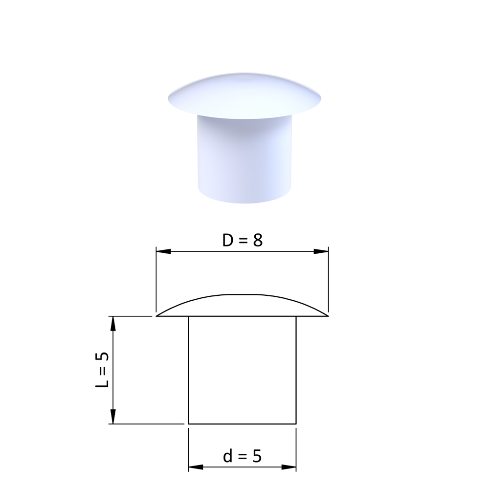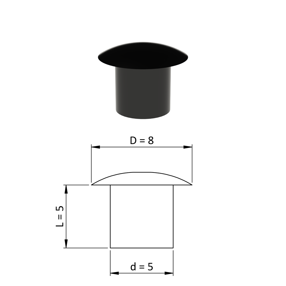 Vnitřní krytka plastová kulatá, otvor ø 5 mm. Dodáváme v barvách: černá RAL9005, bílá RAL9010, šedá RAL 7040.