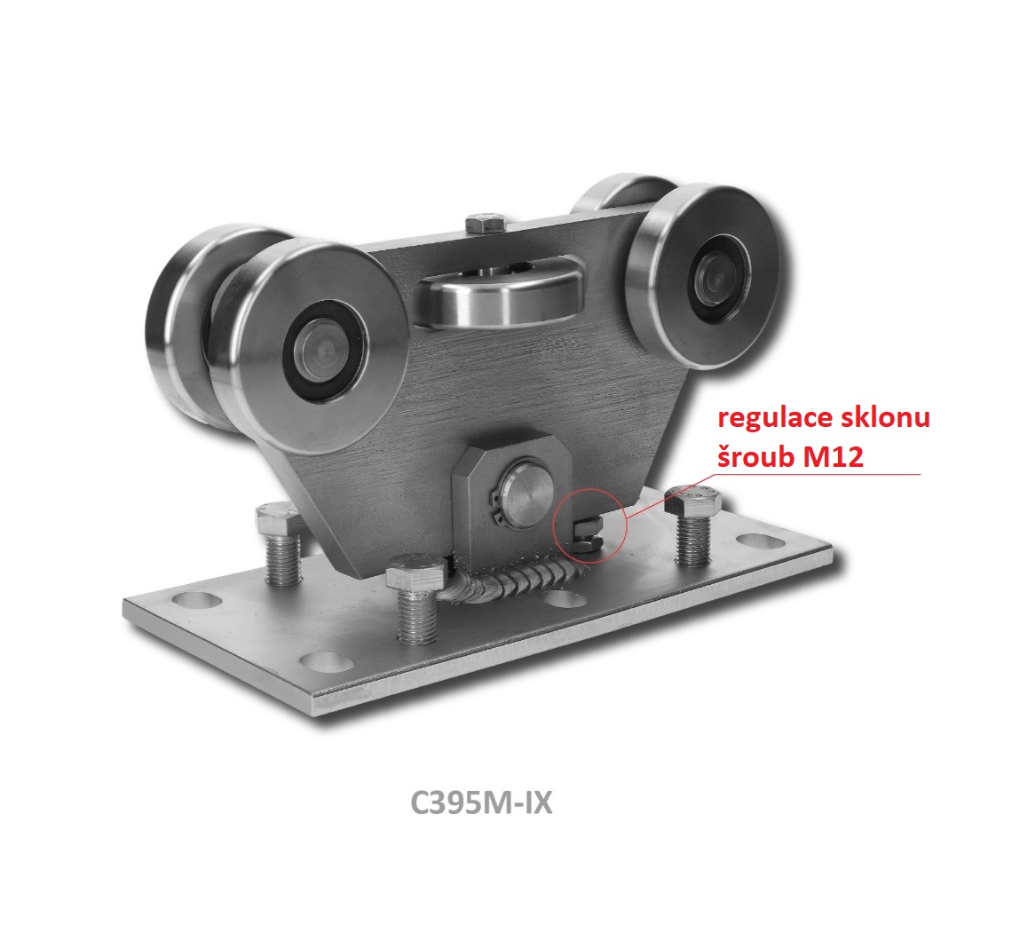 C395 MEDIO IX - kyvný nosný vozík pro samonosnou bránu do 500 kg a délky až 8,5 m od předního italského výrobce Combi Arialdo. Povrchová úprava - nerez AISI 304 bez povrchévé úpravy. Kombinace s C profilem Medio C399M/IX.