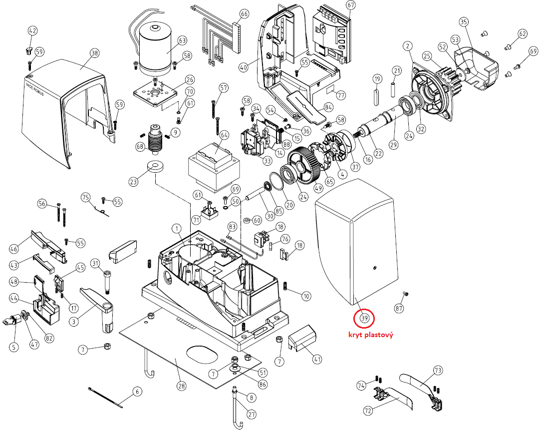 Horní kryt elektroniky pohonu Nice Robus600, Robus1000.