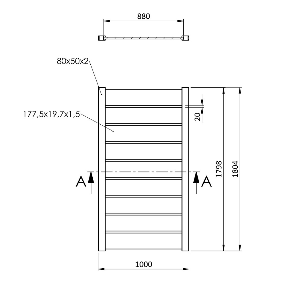 Vstupní hliníková branka, celkový rozměr 1000 x 1803,5 mm. Konstrukce je vyrobená z hliníkové slitiny 6063-T5, která se běžně používá u exteriérových bránových a plotových systémů z důvodu vysoké pevnosti, tvarové stability a vynikající odolnosti proti korozi. V rámu branky jsou připravené otvory pro zámek a kliku.