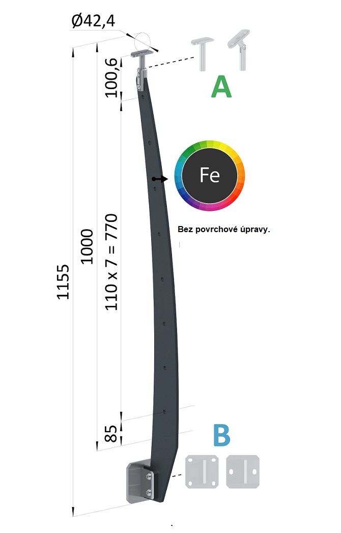 EUROBYT-CB / NEREZOVÉ ZÁBRADLÍ A MADLA / Vypalované sloupky, kombinace železo a nerez / vypalovaný sloupek zábradlí, 8-děrový, železo / nerez