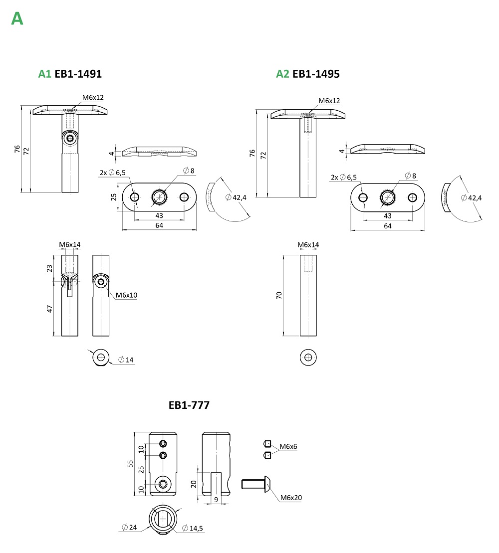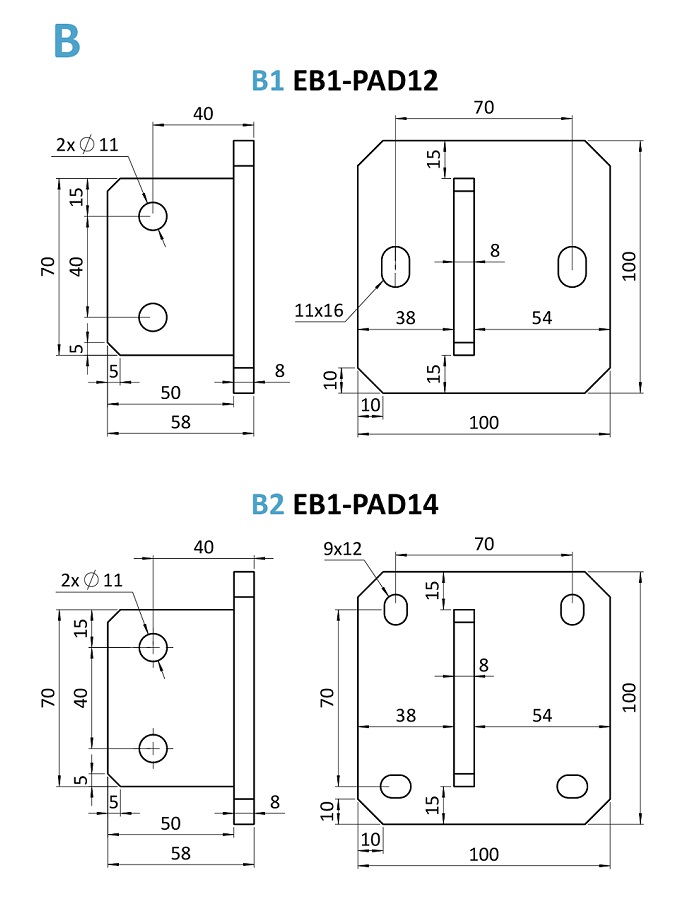 - kotvící příruby: EB1-PAD12 nebo EB1-PAD14