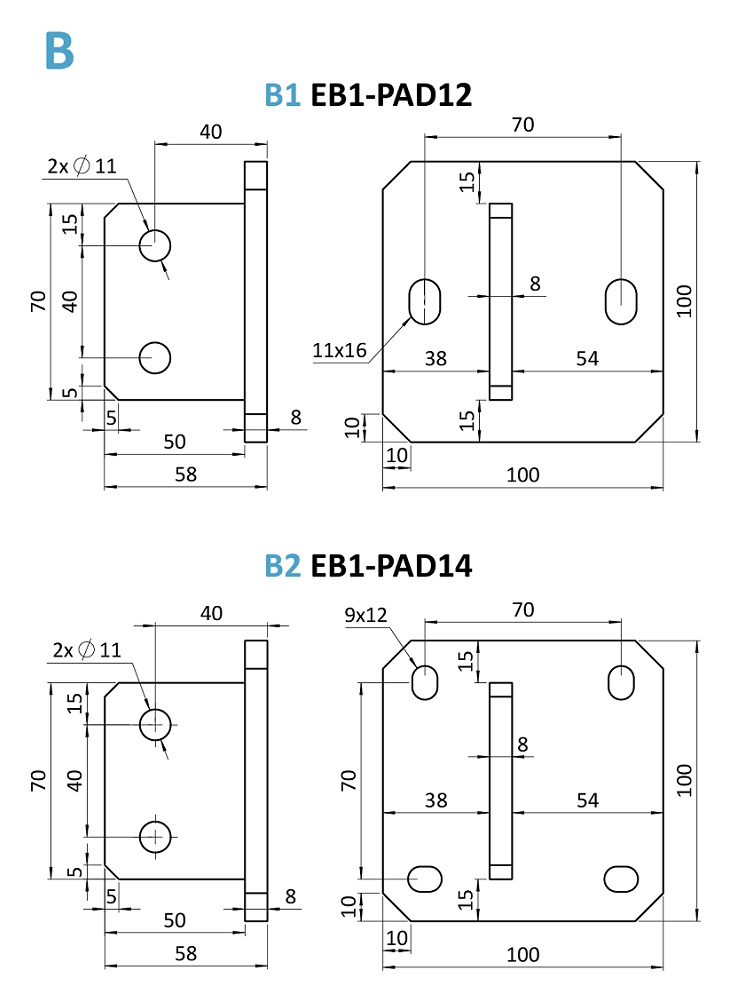 - kotvící příruby: EB1-PAD12 nebo EB1-PAD14