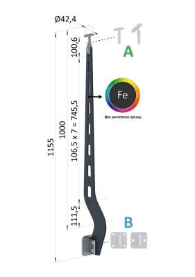 vypalovaný sloupek zábradlí, 8-děrový, železo / nerez