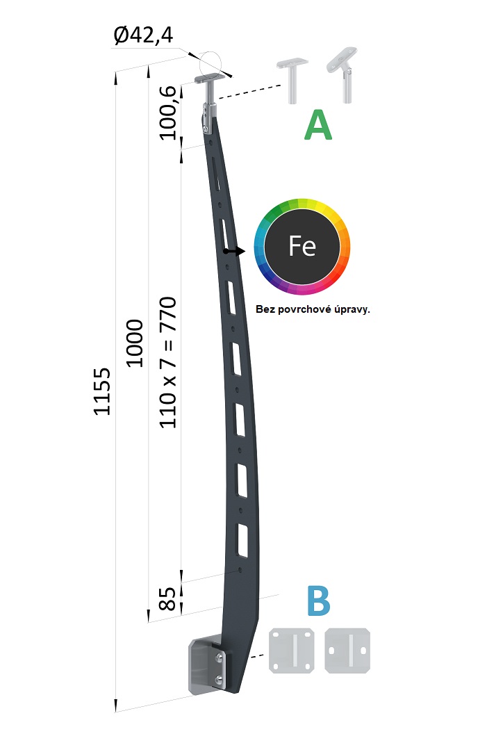 EUROBYT-CB / NEREZOVÉ ZÁBRADLÍ A MADLA / Vypalované sloupky, kombinace železo a nerez / vypalovaný sloupek zábradlí, 8-děrový, železo / nerez