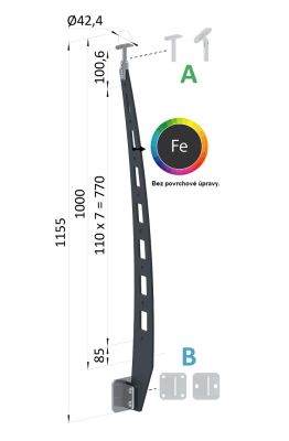 vypalovaný sloupek zábradlí, 8-děrový, železo / nerez