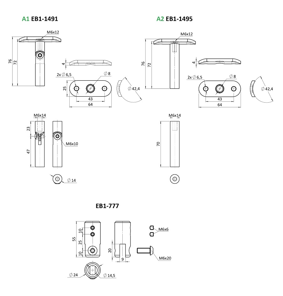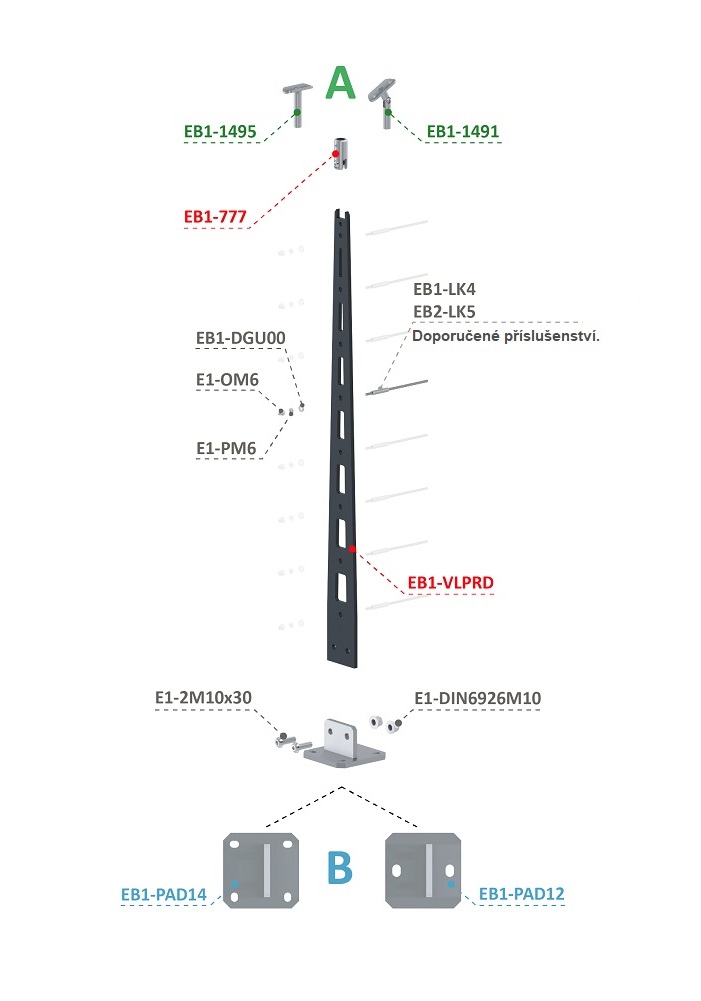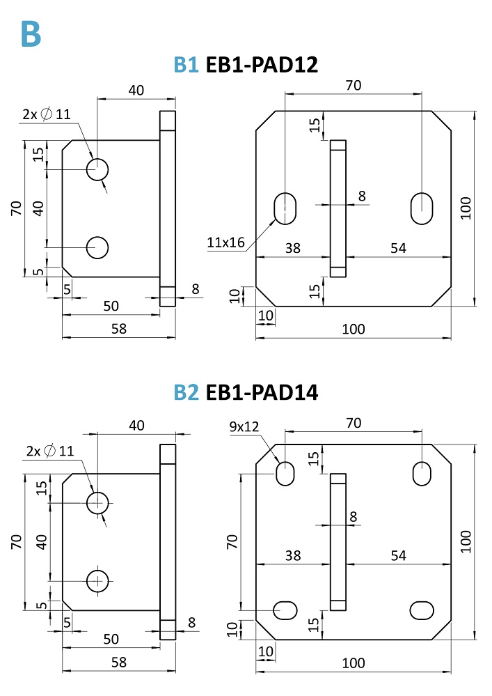 • kotvící příruby: EB1-PAD12 nebo EB1-PAD14