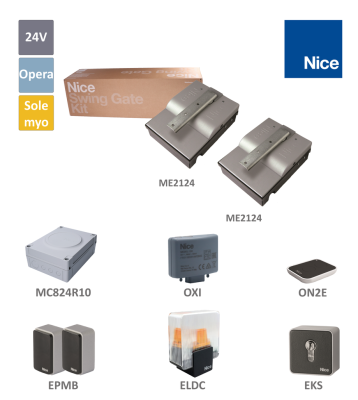 NICE X-METROKit 2124-K - sada podzemních 24V pohonů pro dvoukřídlou bránu, šířka jednoho křídla max. 2,3 m (průjezd 4,6 m). BlueBus technologie.