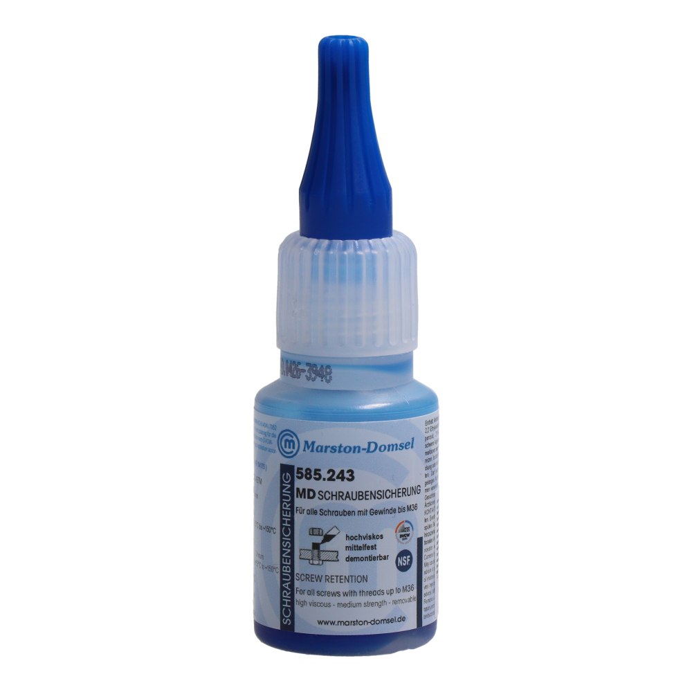 Zajišťovač šroubů Marston-Domsel s vysokou pevností, balení 20 g. K zajištění šroubových spojů a těsnění, závitových spojů, ložisek a trubkových spojů. Nahrazuje konvenční metody upevňování jako závlačky, pojistné matice, šrouby a kolíky. Lepidla od Marston-Domsel jsou spolehlivá i při nejnáročnějších podmínkách. Barva tmavě modrá.