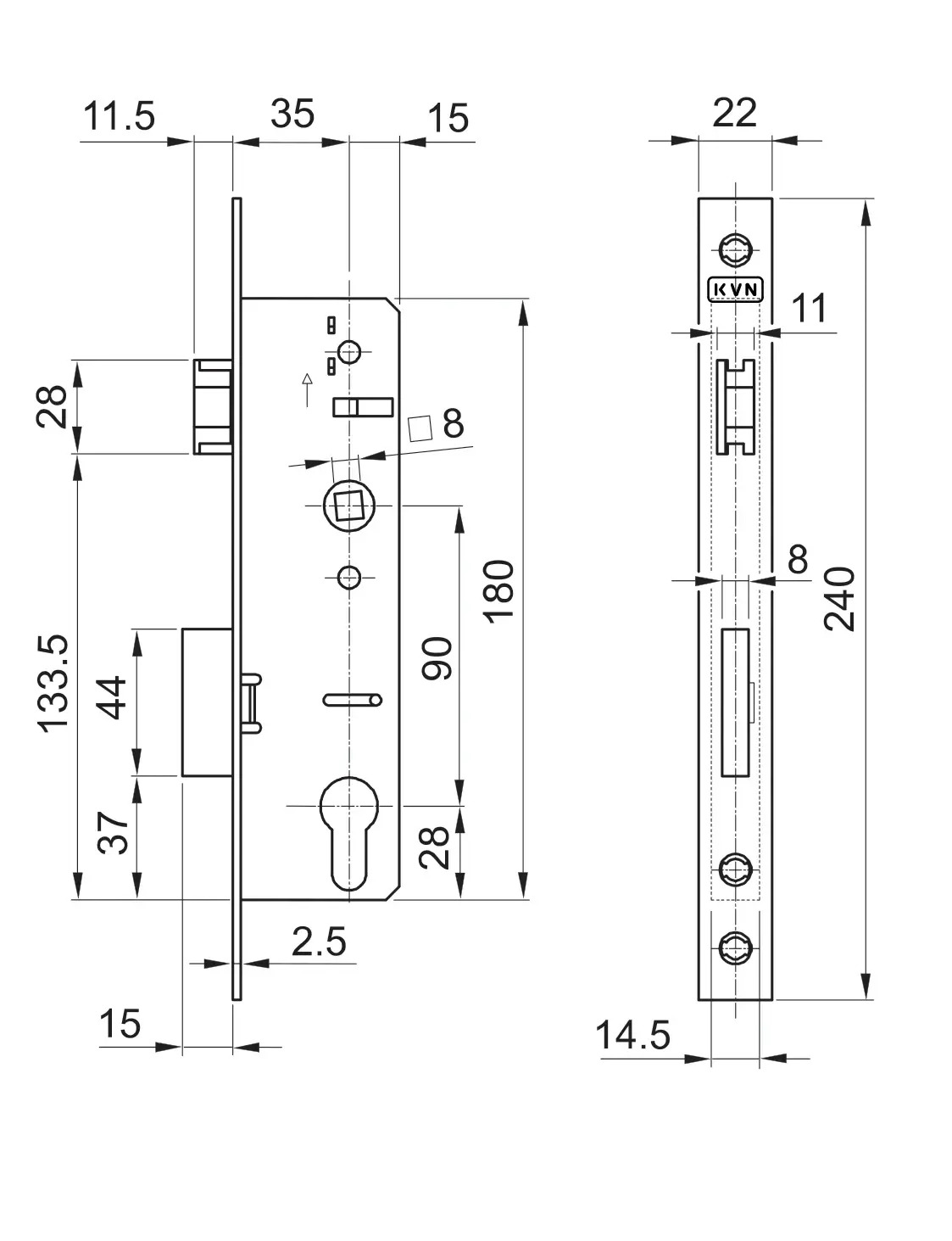 ZM90/50H - oboustranný vložkový zámek s poniklovanou přední lištou, hloubka 50 mm, rozteč 90 mm. Pat...Ukaž celý popis >