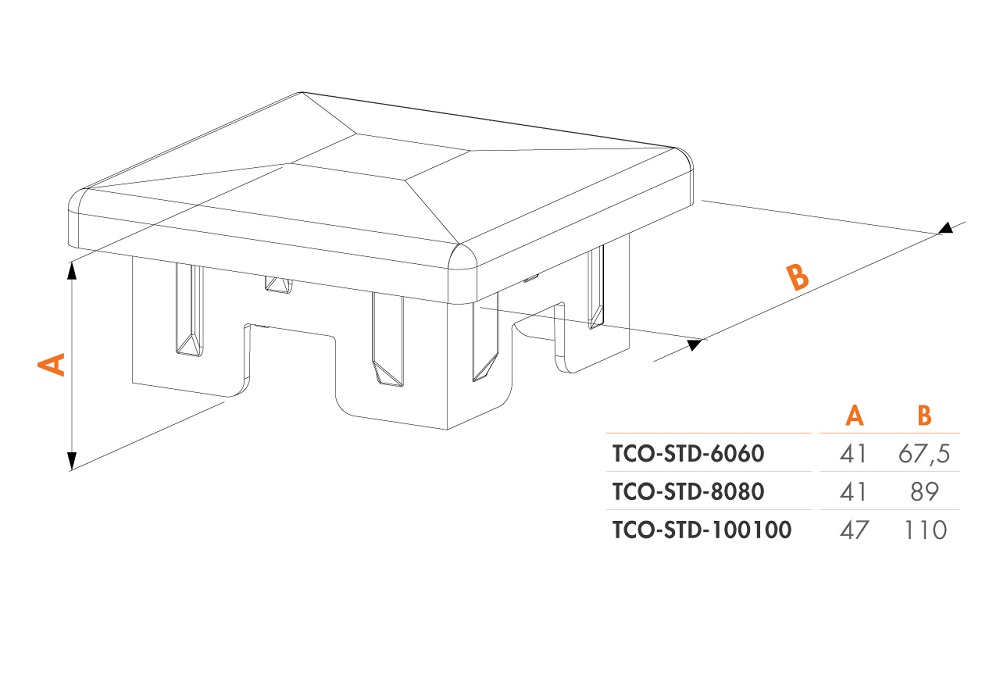 - na profil 100 x 100 mm, A = 47 mm, B = 110 mm