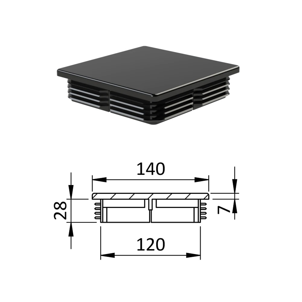 Krytka profilu plastová 140 x 140 mm. Dodáváme v barvách: černá RAL9005, šedá RAL 7040.