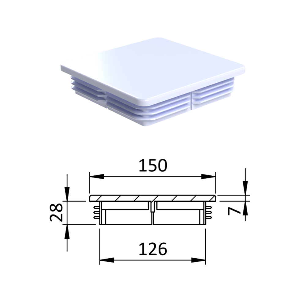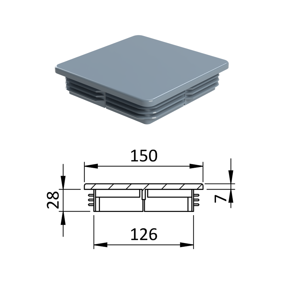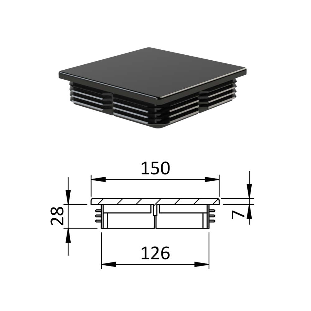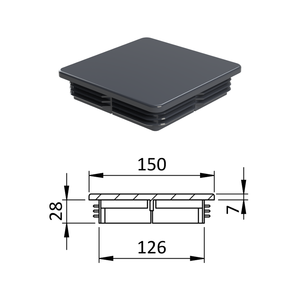 Krytka profilu plastová 150 x 150 mm. Dodáváme v barvách: černá RAL9005, antracit RAL7016, bílá RAL9010, šedá RAL 7040.