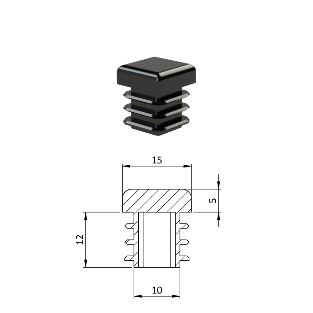 Krytka profilu plastová 15 x 15 mm. Dodáváme v barvách: černá RAL9005, antracit RAL7016, bílá RAL9010, šedá RAL 7040.