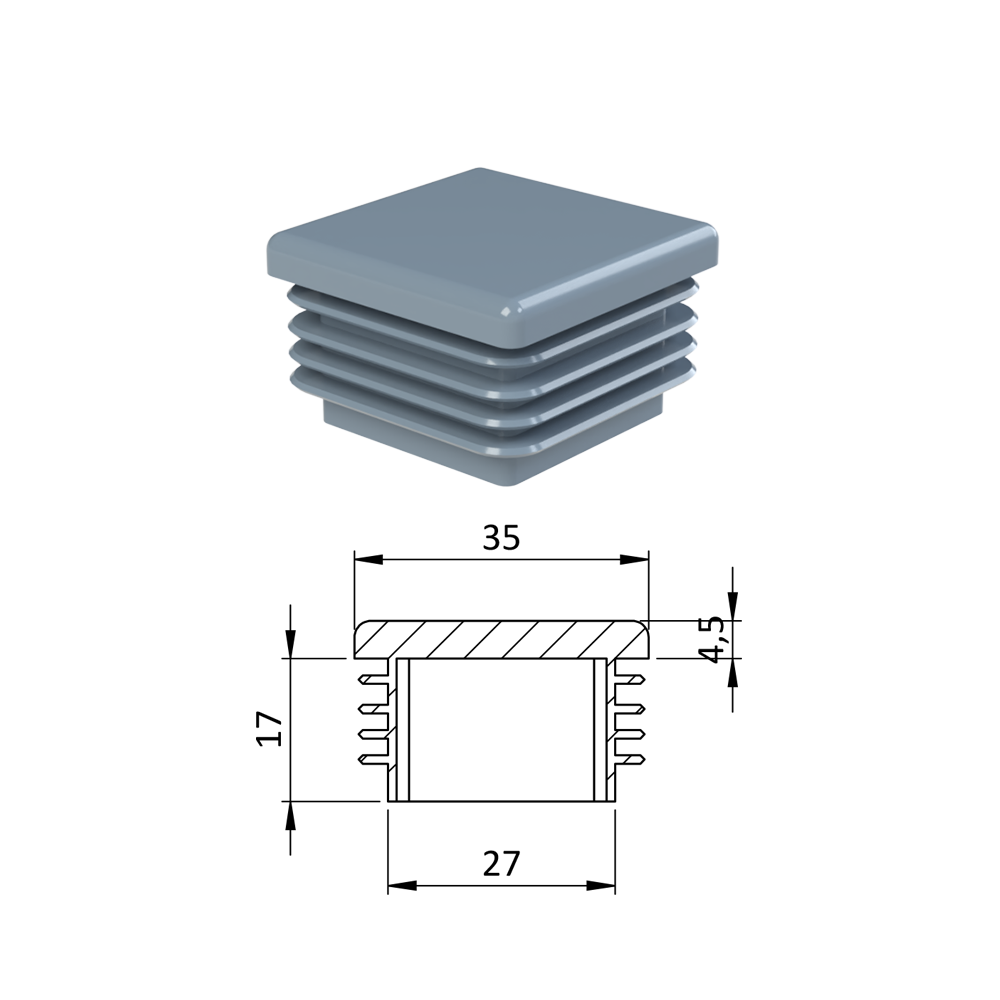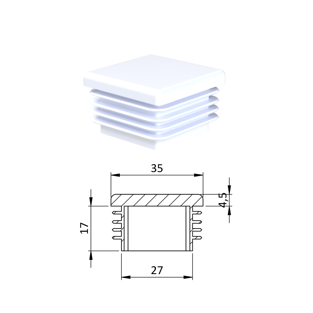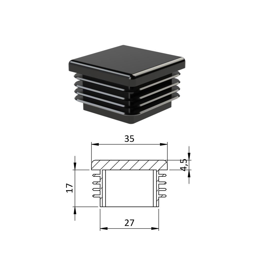 Krytka profilu plastová 35 x 35 mm. Dodáváme v barvách: černá RAL9005, antracit RAL7016, bílá RAL9010, šedá RAL 7040.