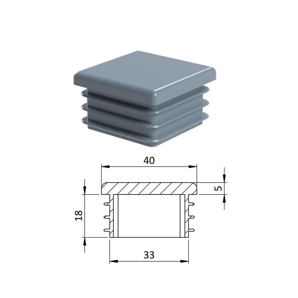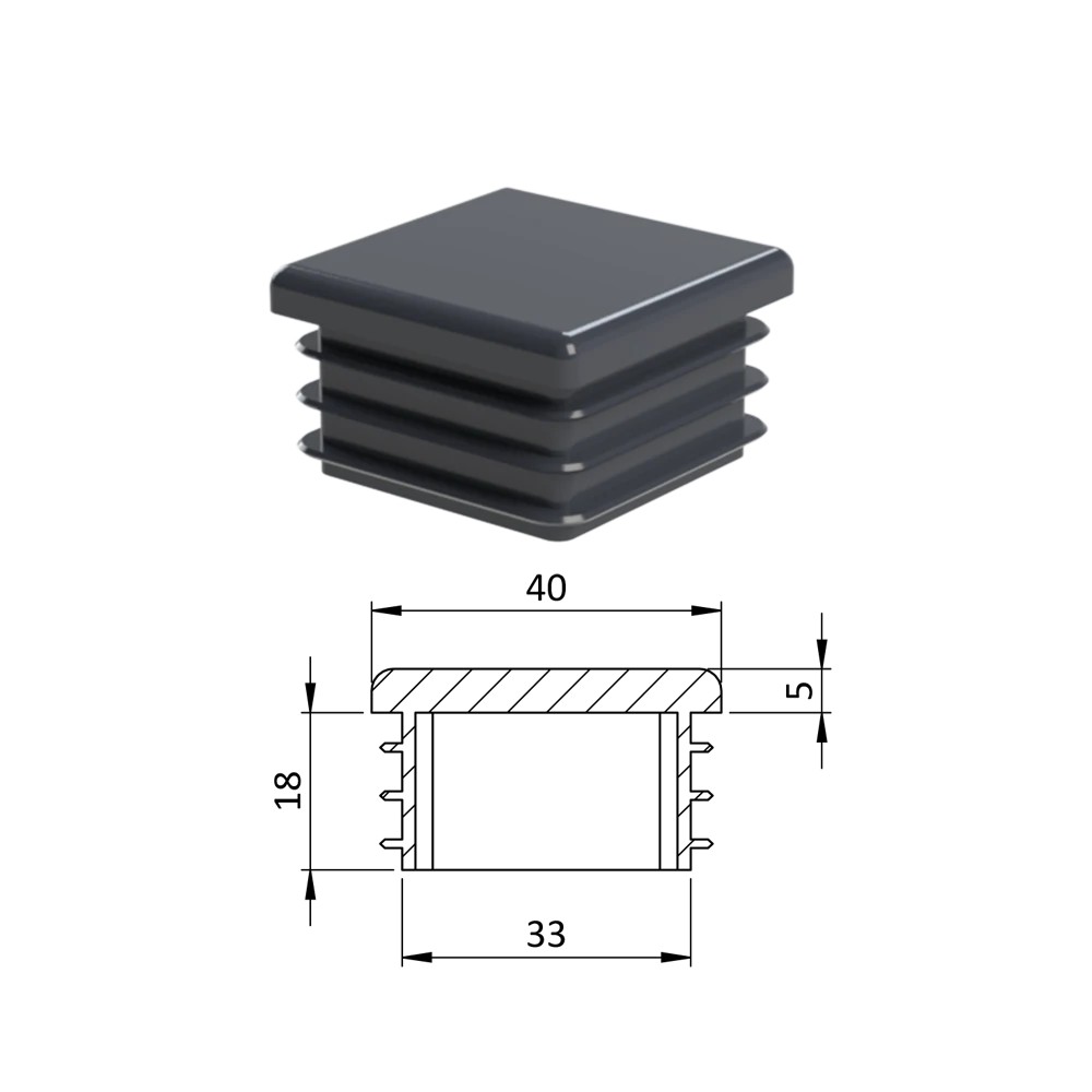 Krytka profilu plastová 40 x 40 mm. Dodáváme v barvách: černá RAL9005, antracit RAL7016, bílá RAL9010, šedá RAL 7040.