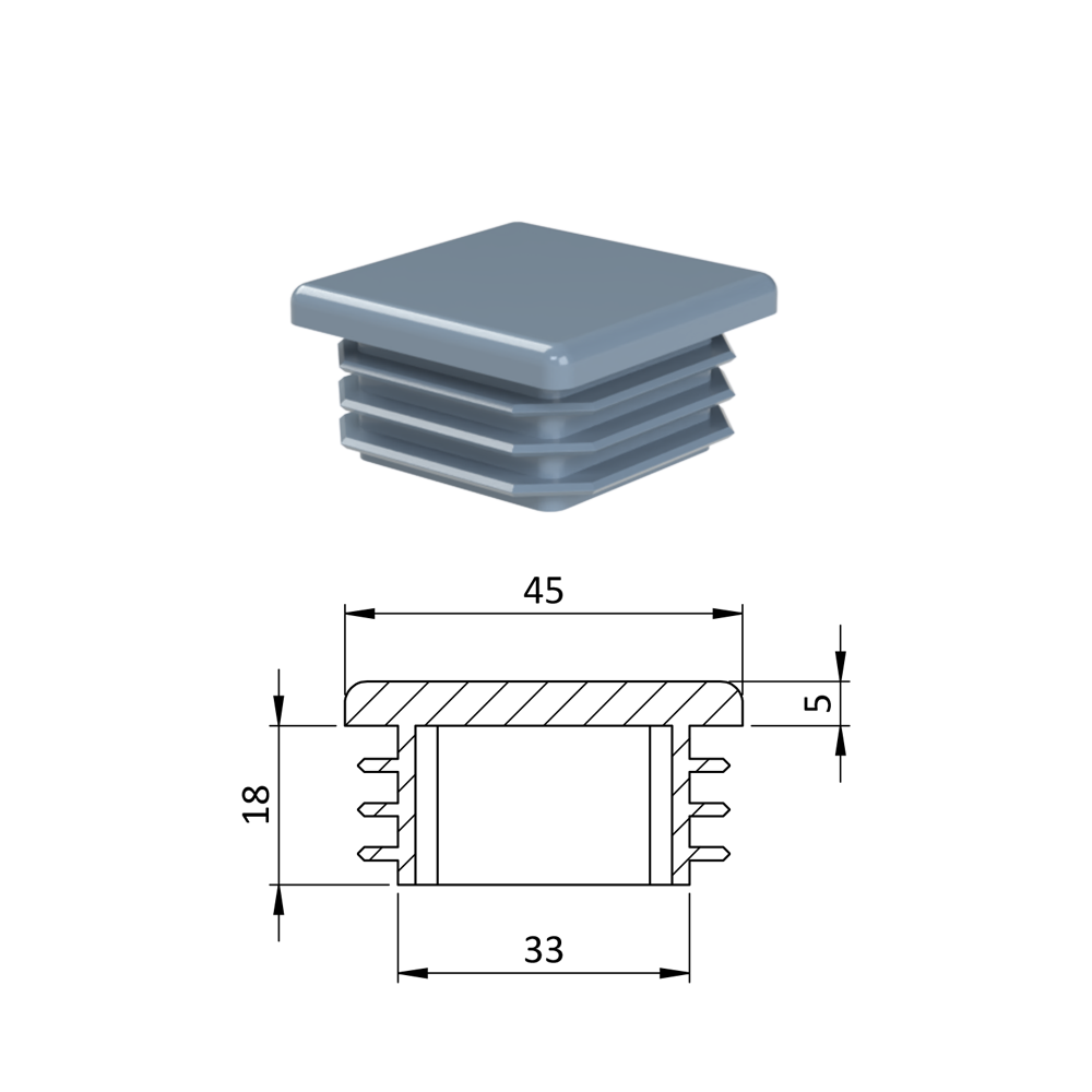 Krytka profilu plastová 45 x 45 mm. Dodáváme v barvách: černá RAL9005, šedá RAL 7040.