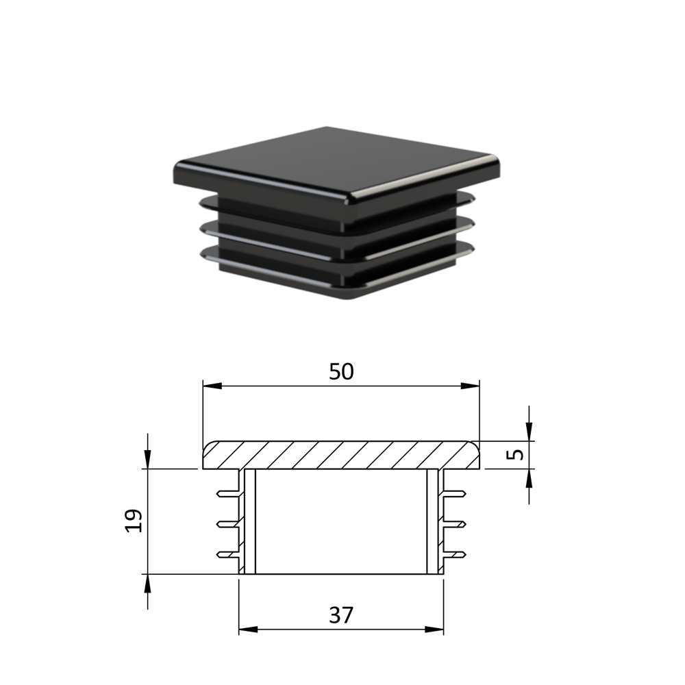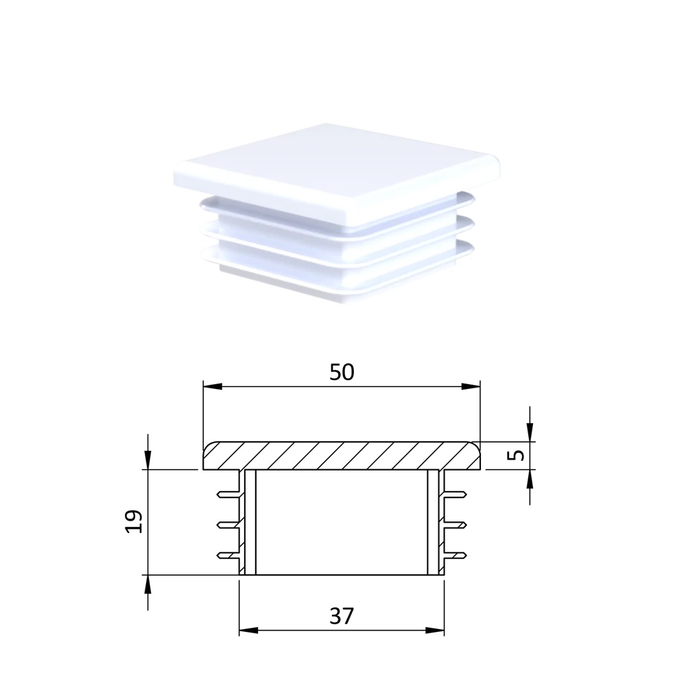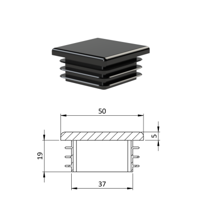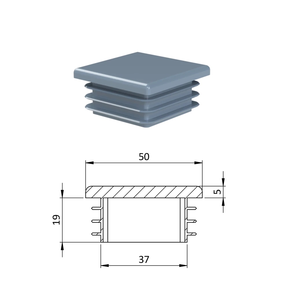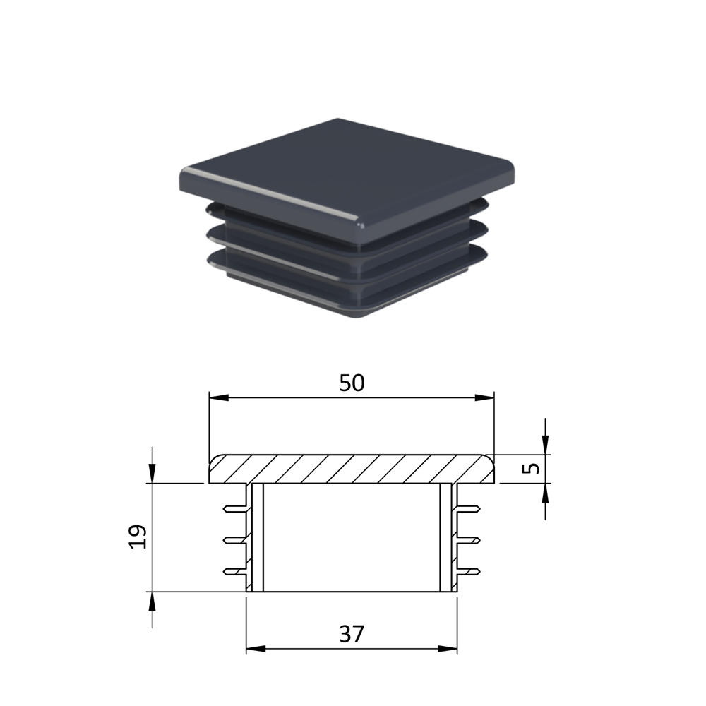 Krytka profilu plastová 50 x 50 x 3-5 mm. Dodáváme v barvách: černá RAL9005, antracit RAL7016, bílá RAL9010, šedá RAL 7040.