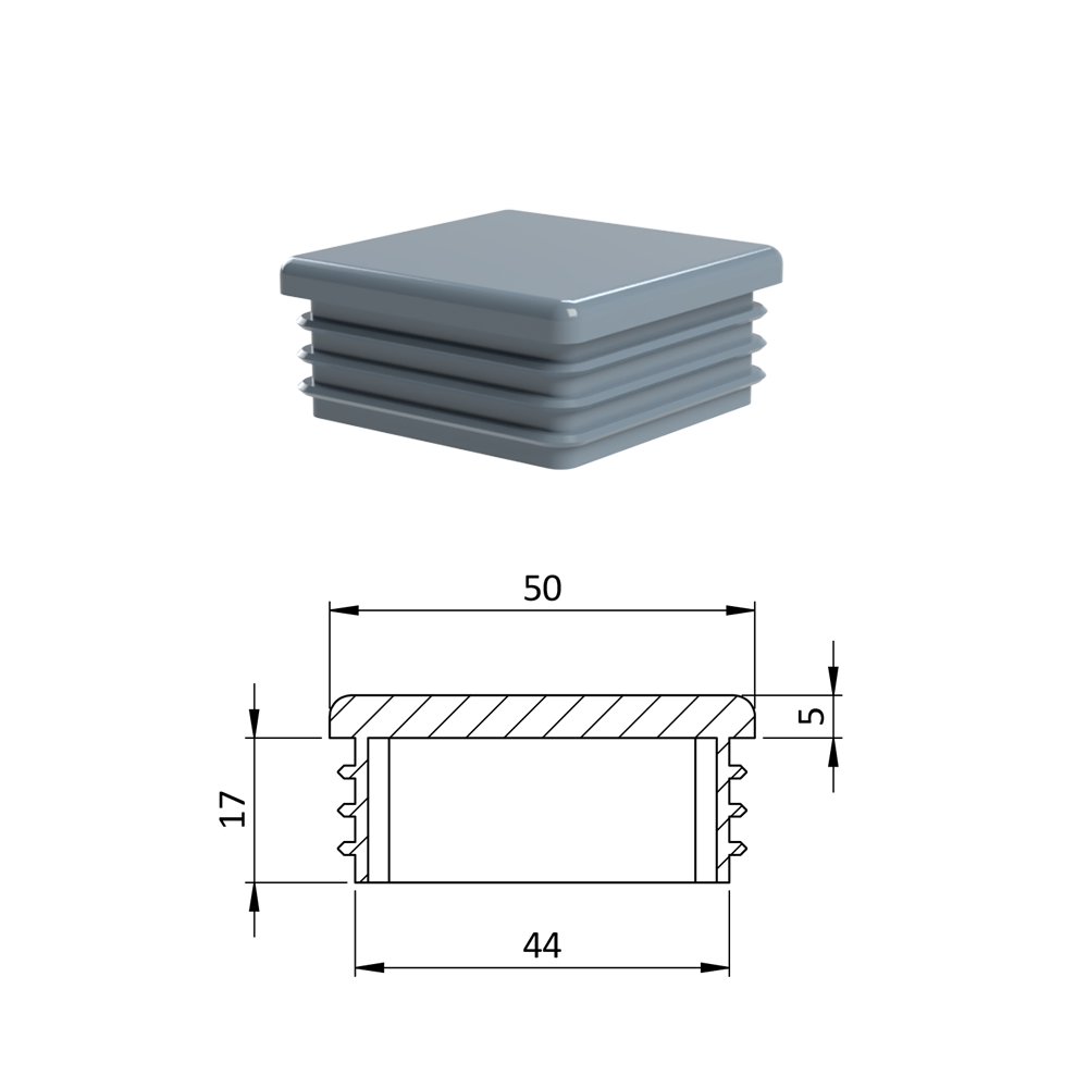 Krytka profilu plastová 50 x 50 mm. Dodáváme v barvách: černá RAL9005, antracit RAL7016, bílá RAL9010, šedá RAL 7040.