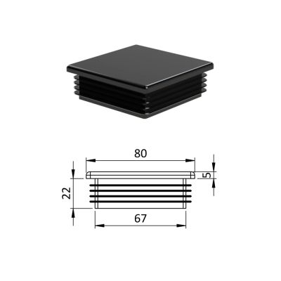 Krytka profilu plastová 80 x 80 mm. Dodáváme v barvách: černá RAL9005, antracit RAL7016, bílá RAL9010, šedá RAL 7040.