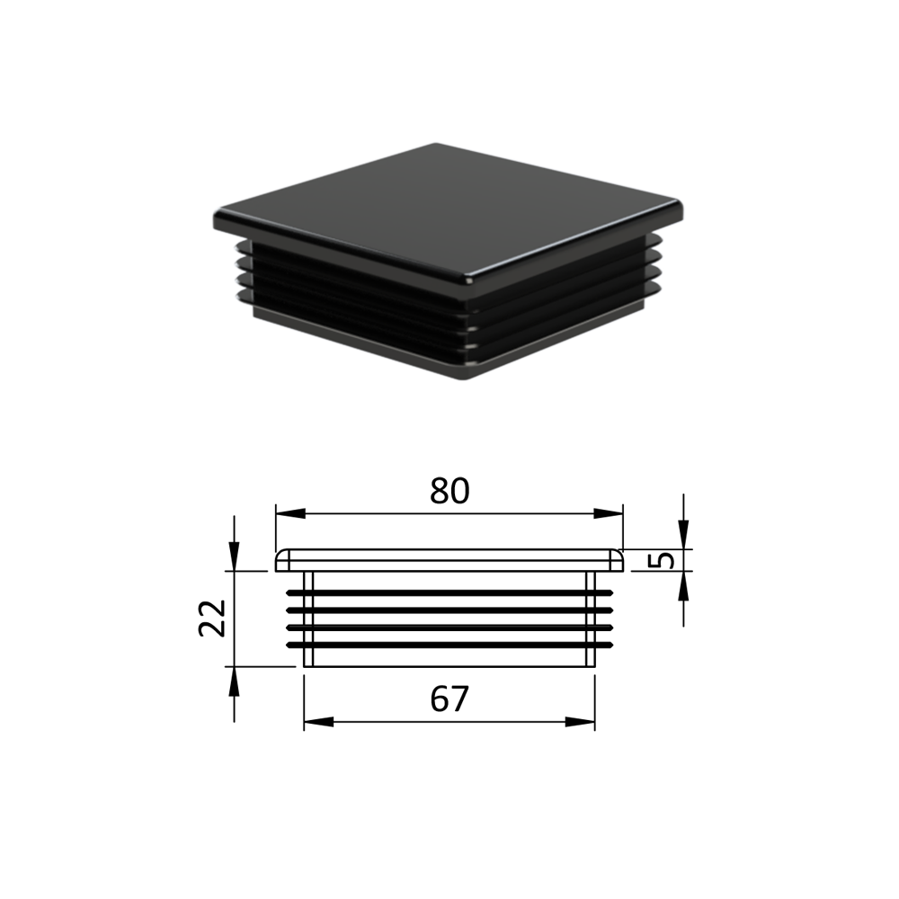 Krytka profilu plastová 80 x 80 mm. Dodáváme v barvách: černá RAL9005, antracit RAL7016, bílá RAL9010, šedá RAL 7040.