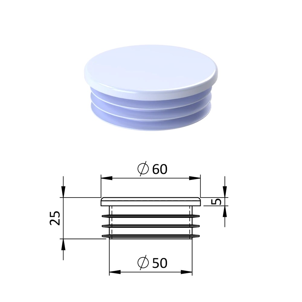 Krytka profilu plastová, vnější průměr 60,3 mm. Dodáváme v barvách: černá RAL9005, antracit RAL7016, bílá RAL9010, šedá RAL 7040.