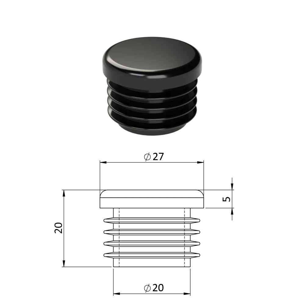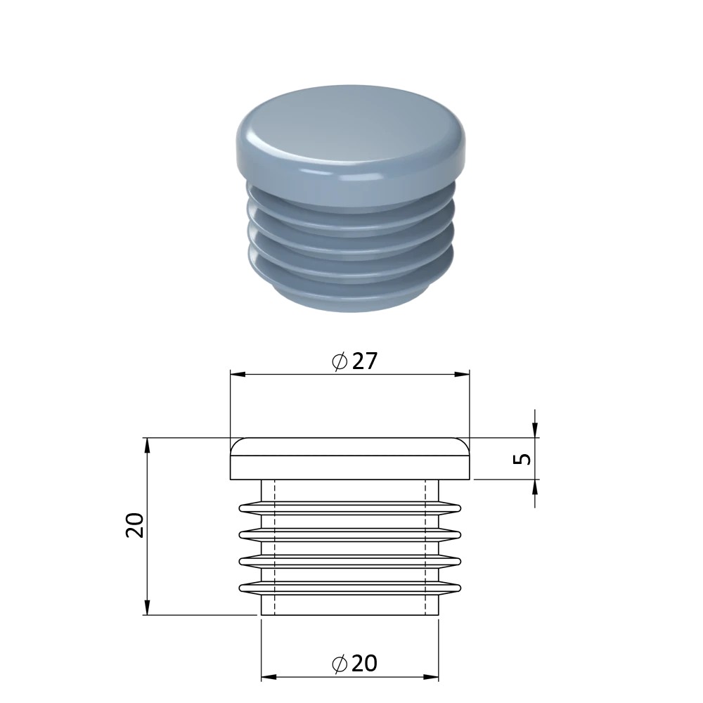 Krytka profilu plastová, vnější průměr 27 mm. Dodáváme v barvách: černá RAL9005, šedá RAL 7040.