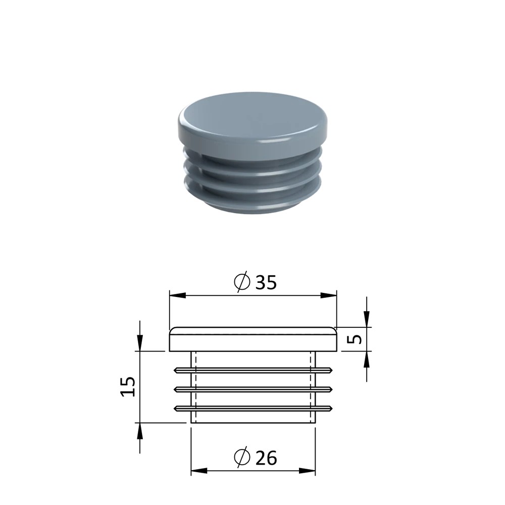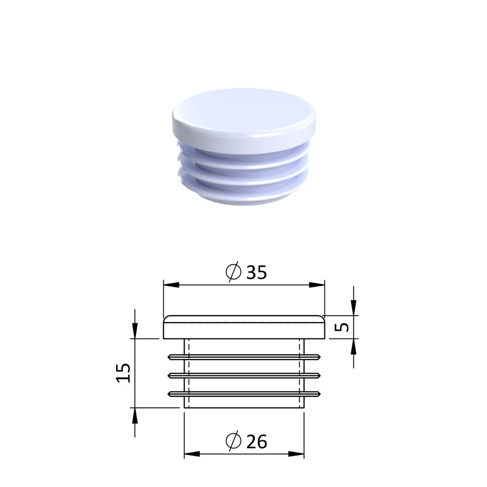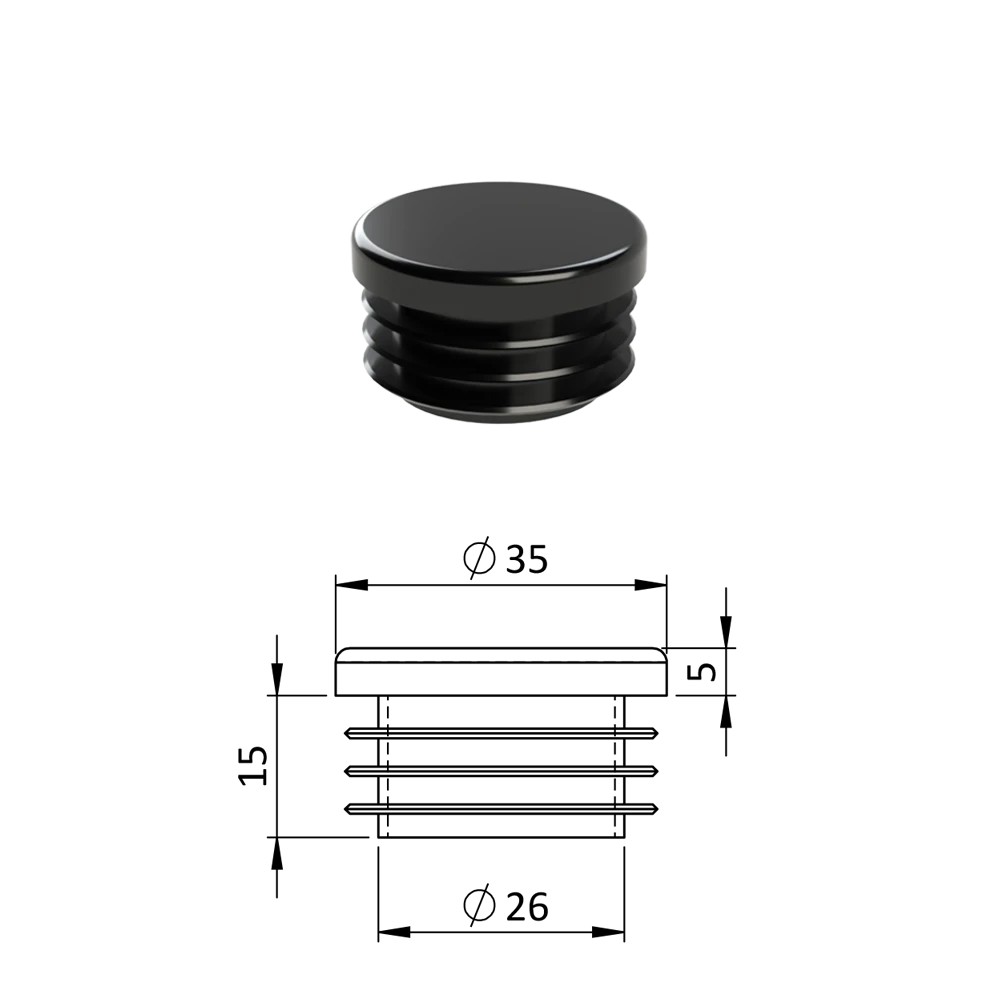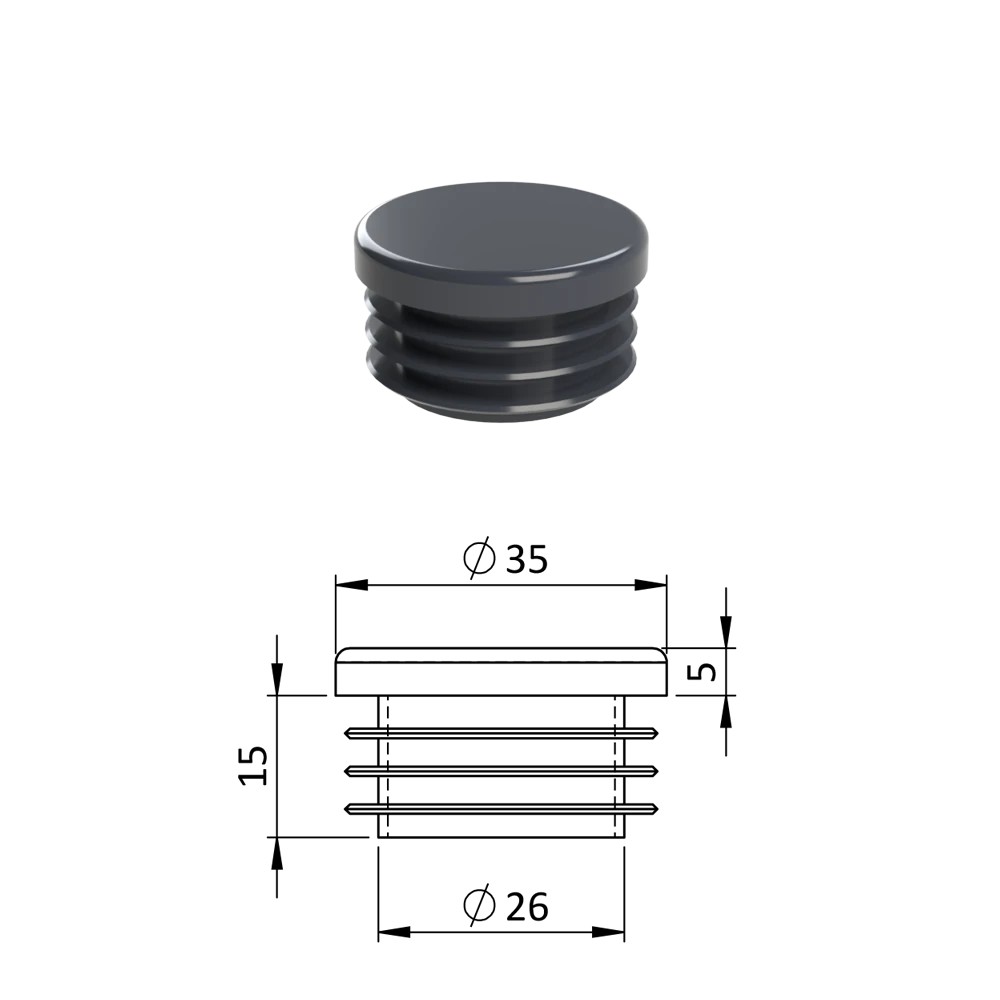 Krytka profilu plastová, vnější průměr 35 mm. Dodáváme v barvách: černá RAL9005, antracit RAL7016, bílá RAL9010, šedá RAL 7040.