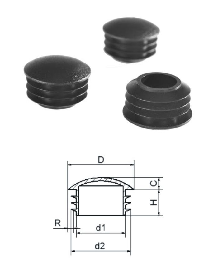 ZOR22 - vnitřní krytka polokulatá plastová ø 22 mm, barva černá RAL9005.