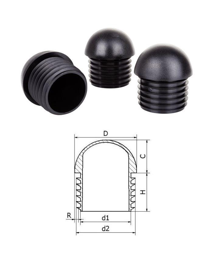 ZORR 1 1/4 - převlečná krytka půlkulatá plastová ø 42,4 mm, barva černá RAL9005.