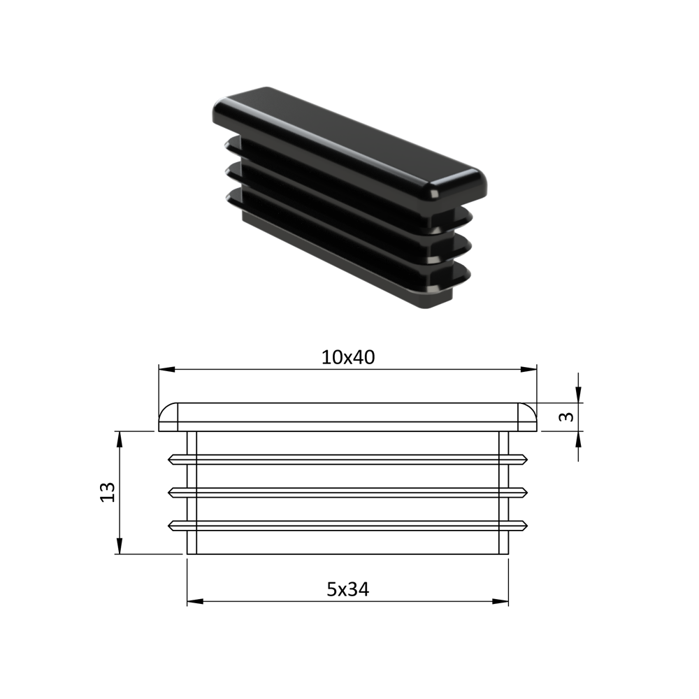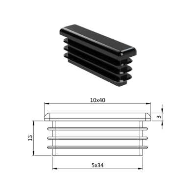 Krytka profilu plastová obdélníková, vnější rozměr 10 x 40 mm. Dodáváme v barvách: černá RAL9005, antracit RAL7016, bílá RAL9010, šedá RAL 7040.