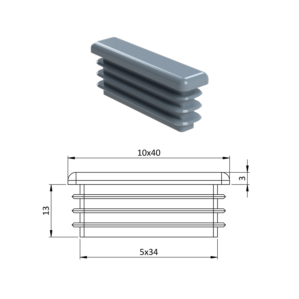 Krytka profilu plastová obdélníková, vnější rozměr 10 x 40 mm. Dodáváme v barvách: černá RAL9005, antracit RAL7016, bílá RAL9010, šedá RAL 7040.