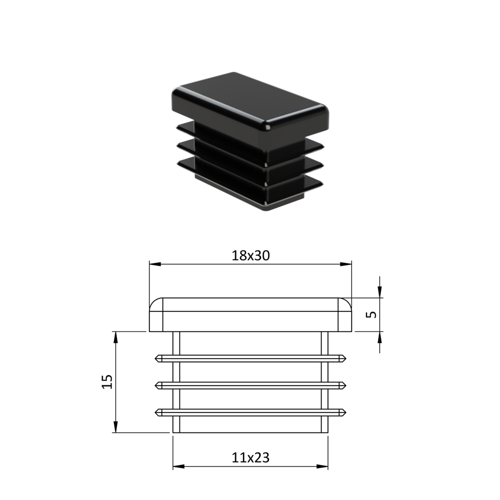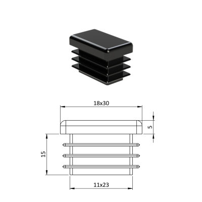 Krytka profilu plastová obdélníková, vnější rozměr 18 x 30 mm. Dodáváme v barvách: černá RAL9005, antracit RAL7016, bílá RAL9010, šedá RAL 7040.