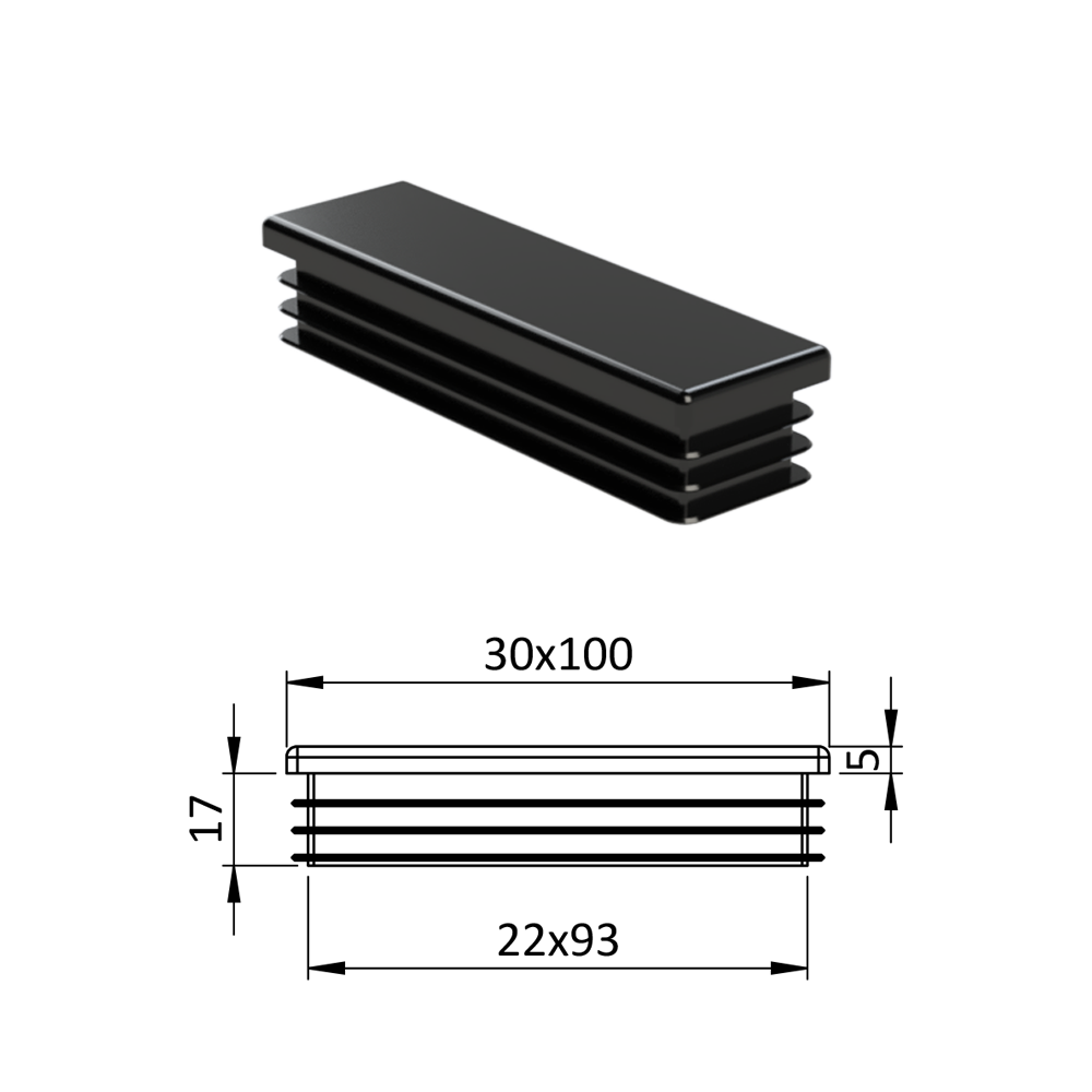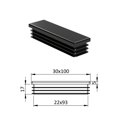 Krytka profilu plastová obdélníková, vnější rozměr 30 x 100 mm. Dodáváme v barvách: černá RAL9005, antracit RAL7016, bílá RAL9010, šedá RAL 7040.