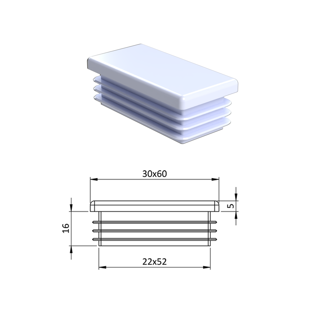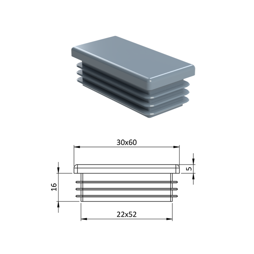 Krytka profilu plastová obdélníková, vnější rozměr 30 x 60 mm. Dodáváme v barvách: černá RAL9005, antracit RAL7016, bílá RAL9010, šedá RAL 7040.