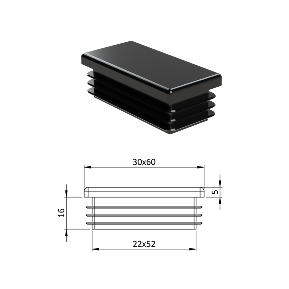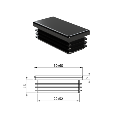 Krytka profilu plastová obdélníková, vnější rozměr 30 x 60 mm. Dodáváme v barvách: černá RAL9005, an...Ukaž celý popis >