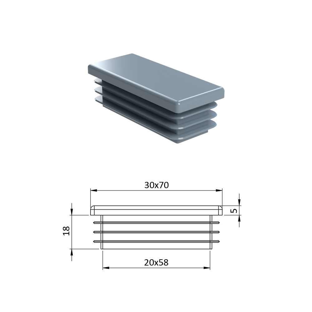 Krytka profilu plastová obdélníková, vnější rozměr 30 x 70 mm. Dodáváme v barvách: černá RAL9005, antracit RAL7016, bílá RAL9010, šedá RAL 7040.