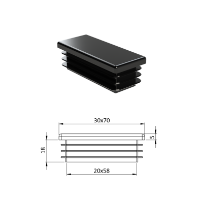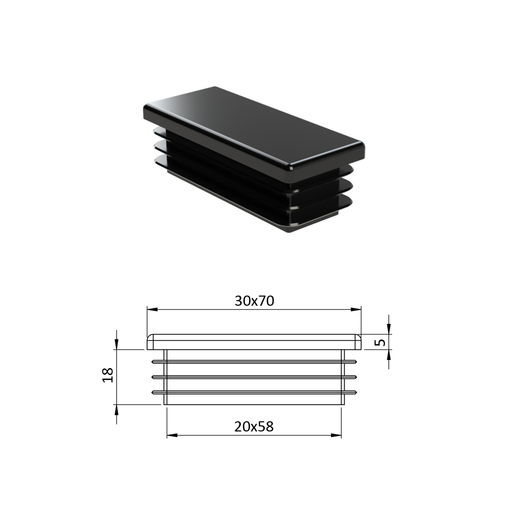 Krytka profilu plastová obdélníková, vnější rozměr 30 x 70 mm. Dodáváme v barvách: černá RAL9005, antracit RAL7016, bílá RAL9010, šedá RAL 7040.