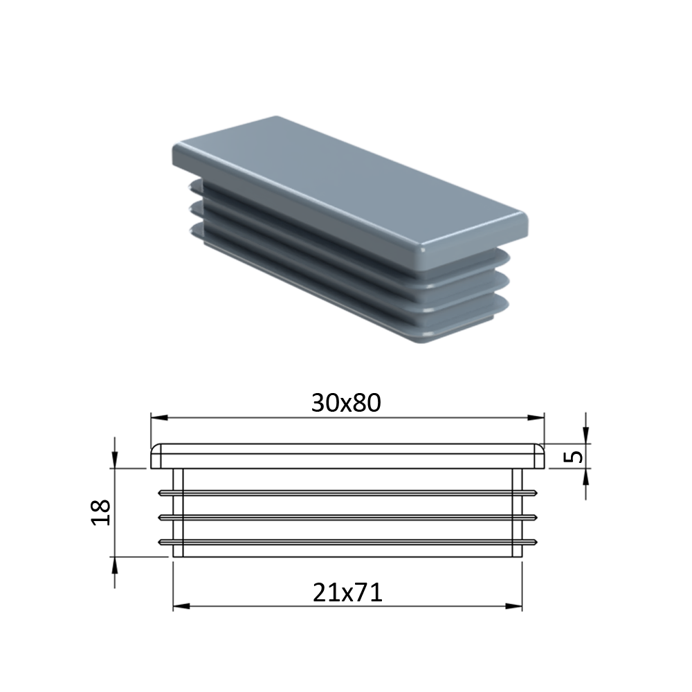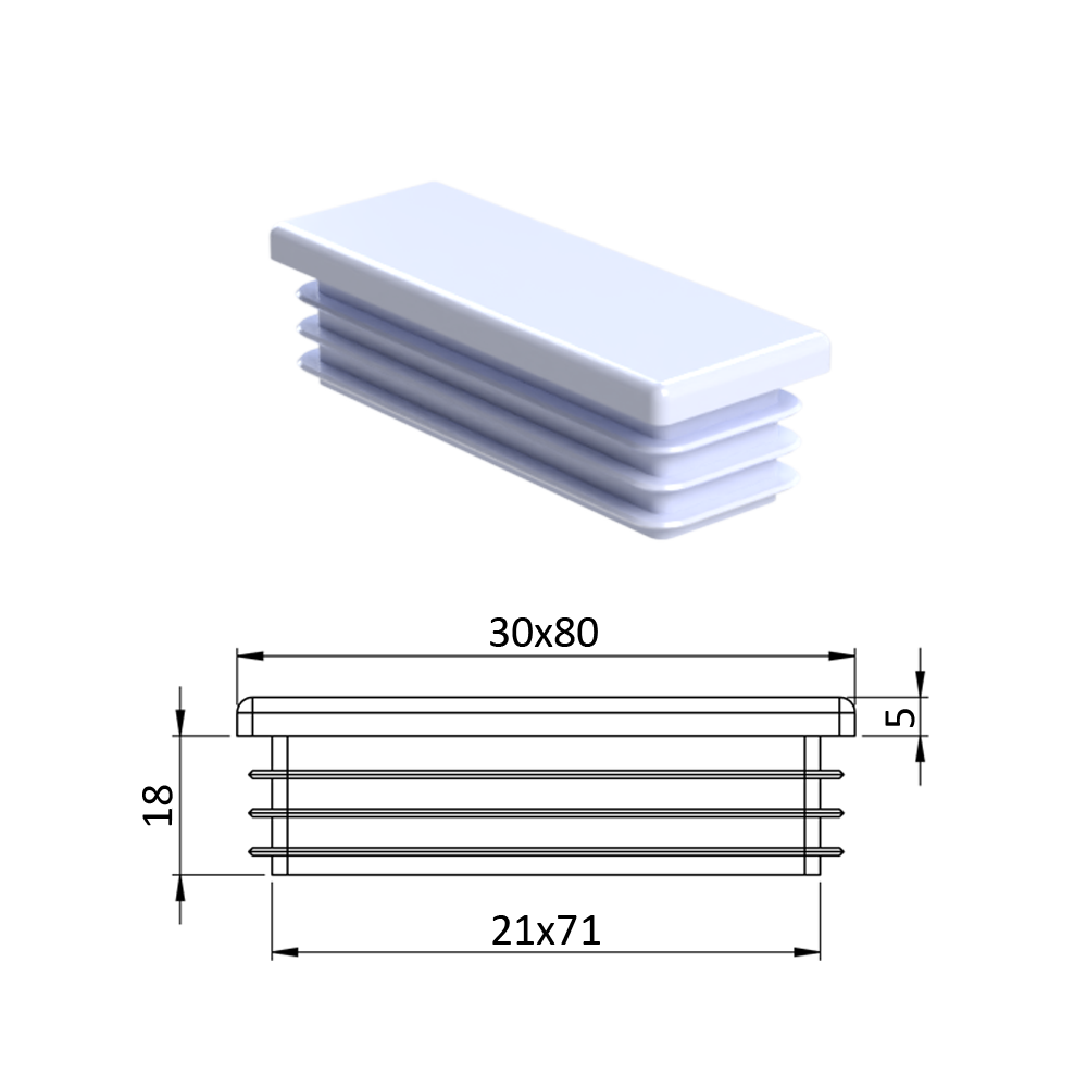Krytka profilu plastová obdélníková, vnější rozměr 30 x 80 mm. Dodáváme v barvách: černá RAL9005, antracit RAL7016, bílá RAL9010, šedá RAL 7040.