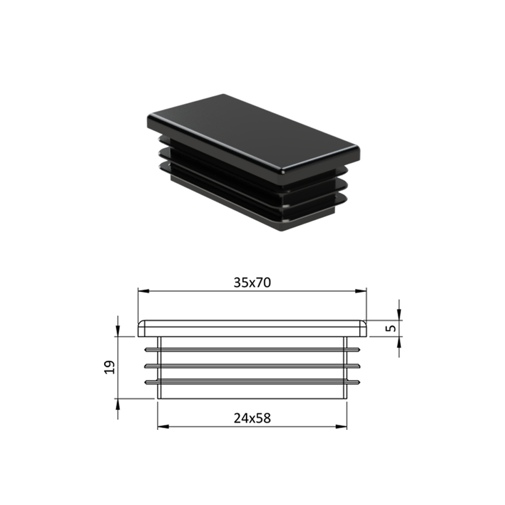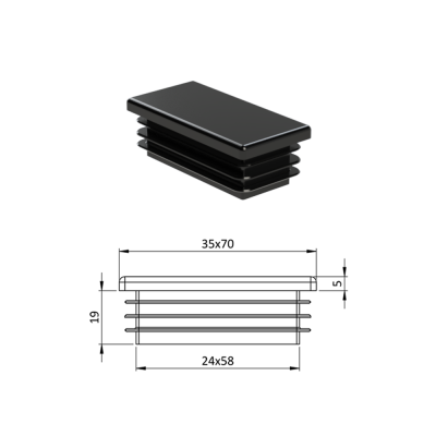 Krytka profilu plastová obdélníková, vnější rozměr 35 x 70 mm. Dodáváme v barvách: černá RAL9005, antracit RAL7016, bílá RAL9010, šedá RAL 7040.