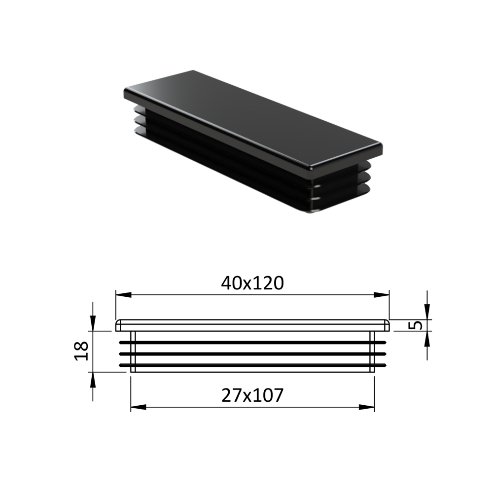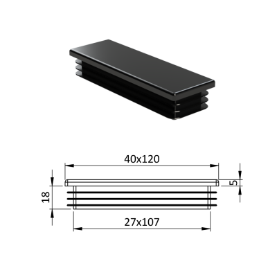 Krytka profilu plastová obdélníková, vnější rozměr 40 x 120 mm. Dodáváme v barvách: černá RAL9005, antracit RAL7016, bílá RAL9010, šedá RAL 7040.