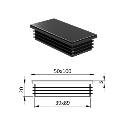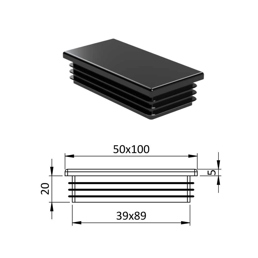 Krytka profilu plastová obdélníková, vnější rozměr 50 x 100 mm. Dodáváme v barvách: černá RAL9005, antracit RAL7016, bílá RAL9010, šedá RAL 7040.