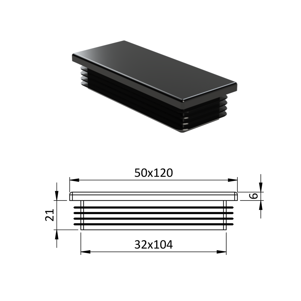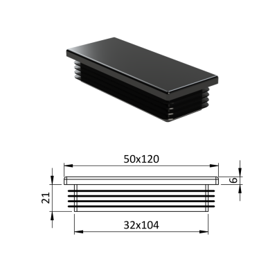 Krytka profilu plastová obdélníková, vnější rozměr 50 x 120 mm. Dodáváme v barvách: černá RAL9005, antracit RAL7016, bílá RAL9010, šedá RAL 7040.