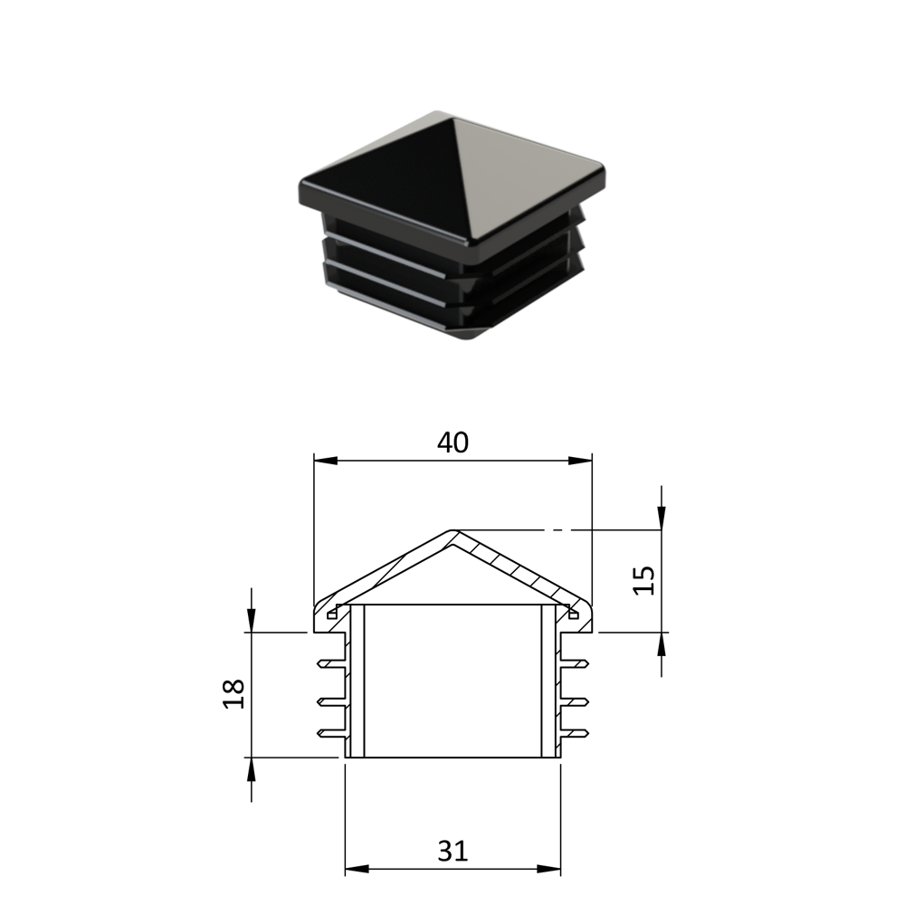 zátka se stříškou ZKK40x40
