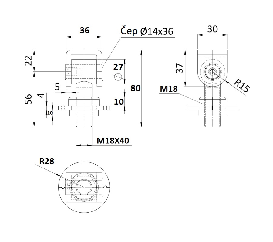 W73/M18 - pant pro křídlové brány a branky, závit M18, nastavitelný, rozebíratelná podložka, částečn...Ukaž celý popis >