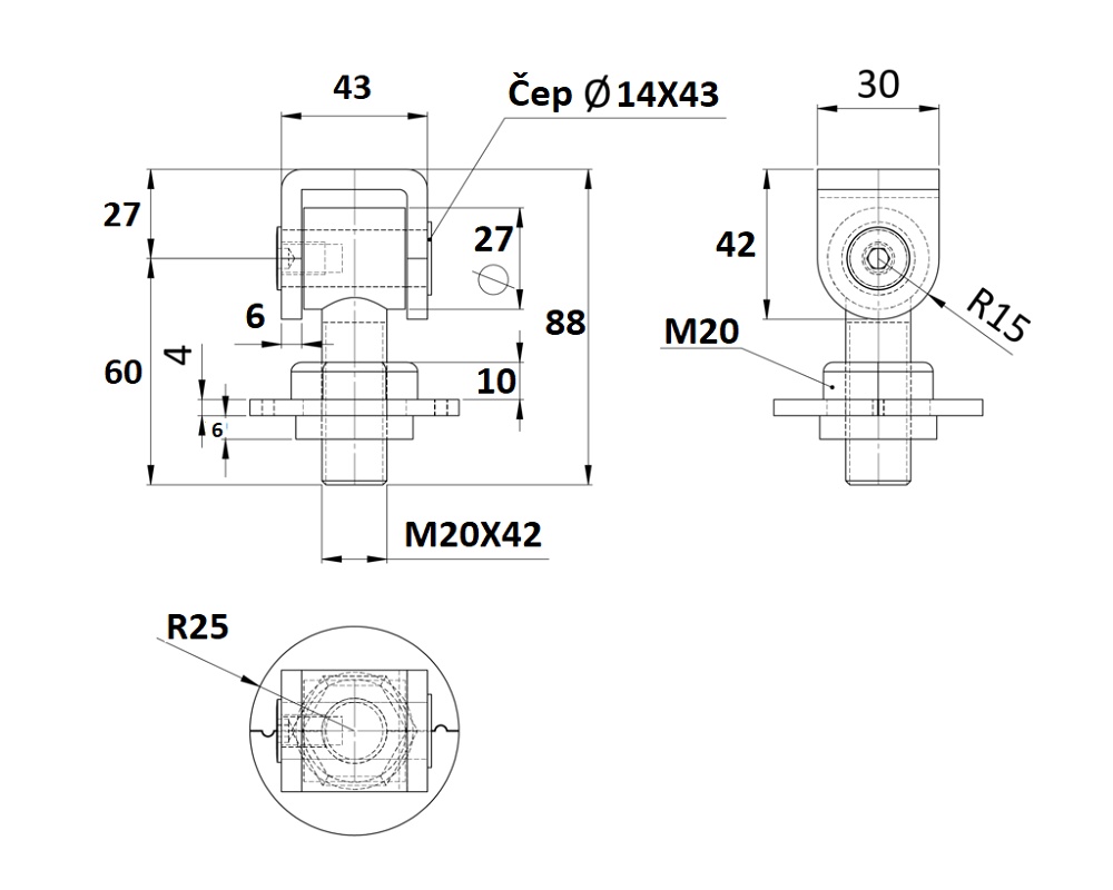 W73/M20 - pant pro křídlové brány a branky, závit M20, nastavitelný, rozebíratelná podložka, částečn...Ukaž celý popis >