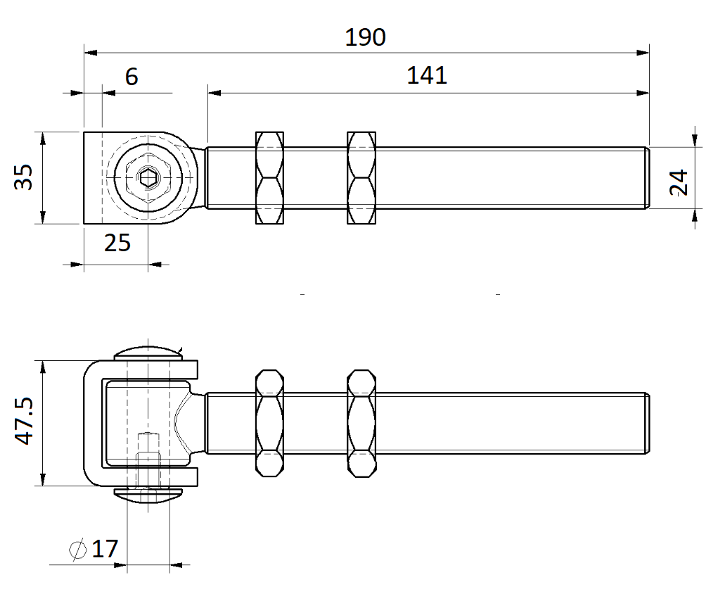 C379/M24 - regulovatelný závěs - pant k navaření, závit M24, délka 190 mm, nosnost 220kg od předního...Ukaž celý popis >