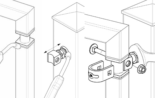 Při montáži je možné křídlo brány nastavit pomocí matice (30mm) nalisované na podložce, která je přivařená k nosnému sloupu. Následně se zajistí kontramatkou. Pant se používá s čepem C861P/30/18.